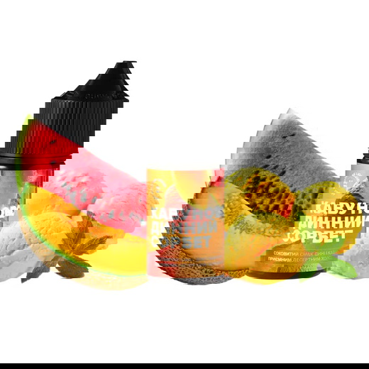 Кавуново-динний сорбет - насолоджуйтесь соковитим вдихом, де солодкість дині плавно перетікає в освіжаючі кавунові ноти, завершуючись делікатним ефектом морозива. Ця жижа має легку кремову текстуру на видиху, що робить процес паріння неймовірно м'яким та приємним. Флакон містить у собі справжнє літо, даруючи тривалий та ароматний післясмак стиглих баштанних культур.
