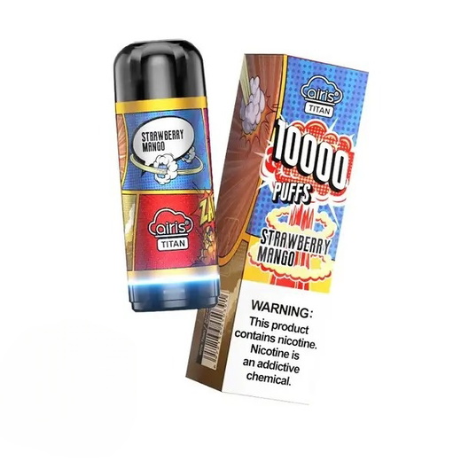 Airis Titan 10000 Strawberry Mango відрізняється насиченим і неповторним смаком. Крім цього, одноразка в процесі роботи видає об'ємні клуби пари, які приємно і рівномірно насичують організм нікотином.Пристрій оснащений акумуляторною батареєю ємністю 600 мАг, рівень заряду якої можливо контролювати через кольоровий датчик. Пристрій завжди можливо зарядити за допомогою стандартного кабелю Type-C.