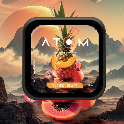 Тютюн Atom Tropic Blaze (Тропічні фрукти) 100г — відчуйте яскравий спалах тропічного смаку, де солодка екзотика манго, соковита кислинка ананаса та терпкі ноти маракуї зливаються в єдиний екзотичний коктейль. Ця заправка створена на основі листа Virginia Gold і має легку міцність, що дозволяє цьому сонячному букету розкритися максимально чисто й насичено.