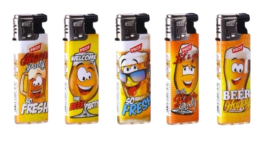 Запальничка Prof Lighters with Beer Logo’s — це яскрава одноразова запальничка з веселим дизайном у пивній тематиці.