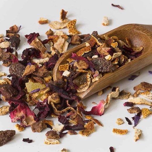 Фіалковий оксамит - це не просто чай, а справжній напій-хамелеон, створений для будь-якого настрою та пори року. В його основі лежить сміливий та яскравий квартет: ніжні пелюстки фіалки, соковитий виноград, терпкі ягоди глоду та рубіновий каркаде. Це весела композиція, яка взимку обіймає вас теплом, як пряний глінтвейн, а спекотним літом перетворюється на освіжаючу хмаринку прохолоди, особливо якщо подати її з льодом та свіжими фруктами.