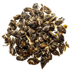 Жасминове Око Фенікса - його створення — це кропіткий ритуал, який можливий лише в короткий період цвітіння квітів. Кожна “перлина” скручується вручну з двох найніжніших верхніх листочків, нагадуючи міфічне око фенікса. Потім його пересипають свіжими квітами жасмину, щоб він повністю увібрав їхній дорогоцінний аромат, після чого квіти так само вручну прибирають. Адже в справжньому чаї не повинно бути нічого, крім чаю.