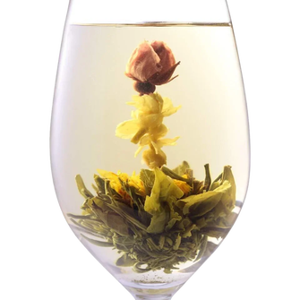 Зв'язаний чай (його ще називають квітучий, розквітаючий чай, чайний бутон, blooming tea) - це зібрана вручну чайна композиція: листя (найчастіше зелене або біле) акуратно зв'язують ниткою навколо квітки чи бутона. При заварюванні кулька поступово розкривається, перетворюючись на "букет" - тому цей напій цінують не лише за смак, а й за красиву подачу.