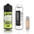 Додайте гліцерин у флакон з ароматною основою. Додайте нікобустер для досягнення бажаної міцності 3 мг/мл або залиште цей крок для безнікотинової версії. Добре струсніть для рівномірного змішування компонентів. Дайте настоятися від 3 до 72 годин для повного розкриття смаку яблука та дині.