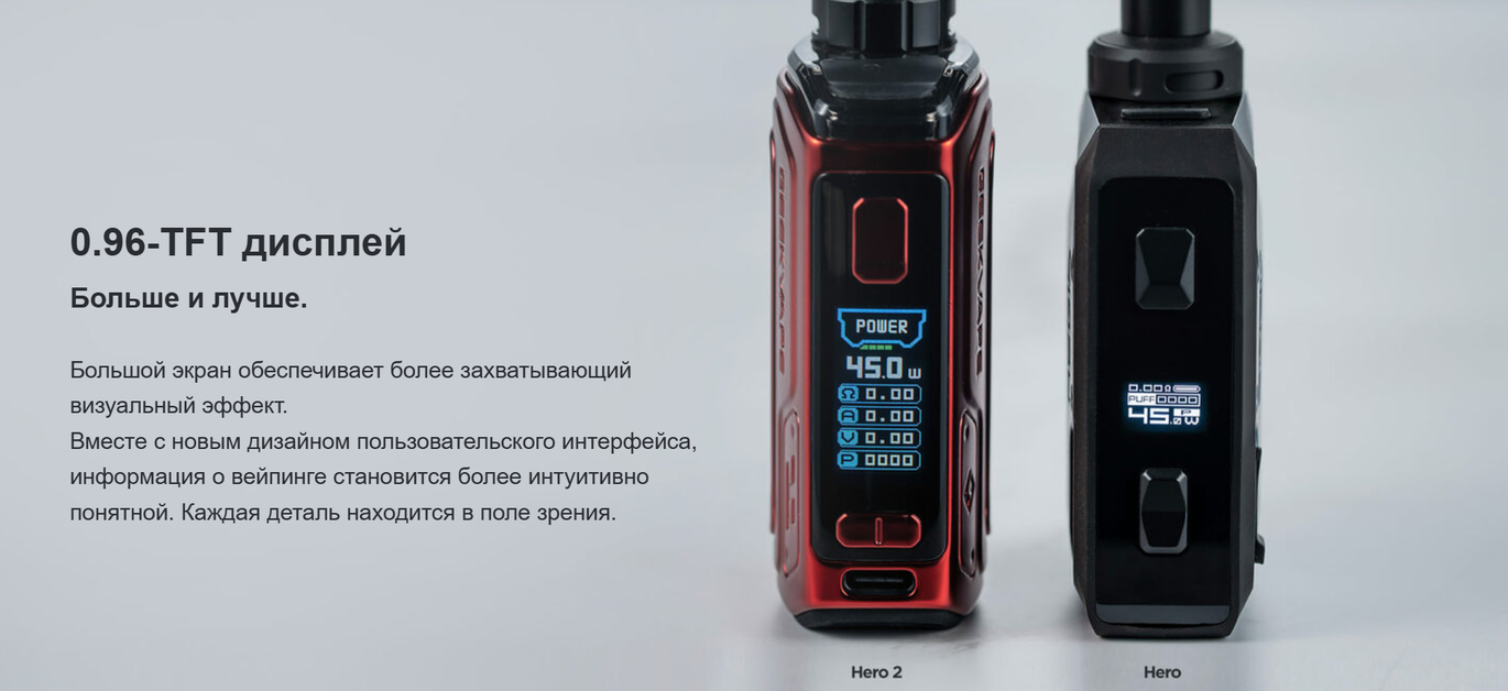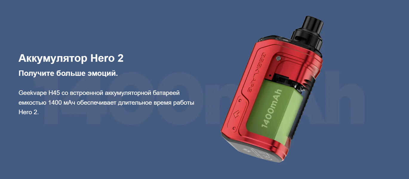 - ПРПавел Руденко21.01.2025 06:20Гиквейп аегис хиро 2 отличный выбор для любителей вкусового пара, да еще и аккумулятор долго держит.ПлюсиНадежная сборка.МінусиНеа