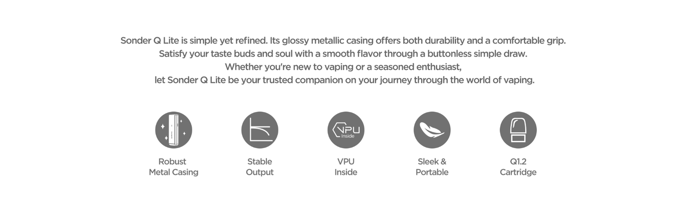 Sonder Q Lite активується простою затяжкою, без кнопок та екранів, що робить використання неймовірно простим. Вбудована батарея на 500 мач заряджається через порт Type-C, що забезпечує швидке заправлення енергією. Рівень заряду можна легко відстежувати завдяки LED- індикатору на корпусі.