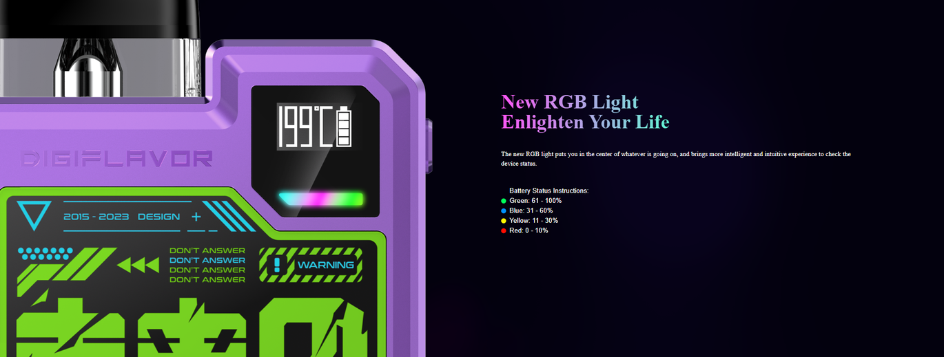 Пристрій має компактні розміри (70.96 мм x 48.80 мм x 16.80 мм) і чудово лежить у руці. Виготовлений з алюмінієвого сплаву, Digi-Q доступний у різноманітних кольорах, що дозволяє кожному знайти свій улюблений стиль. Мінімалістичний дизайн доповнюється яскравими акцентами на корпусі.