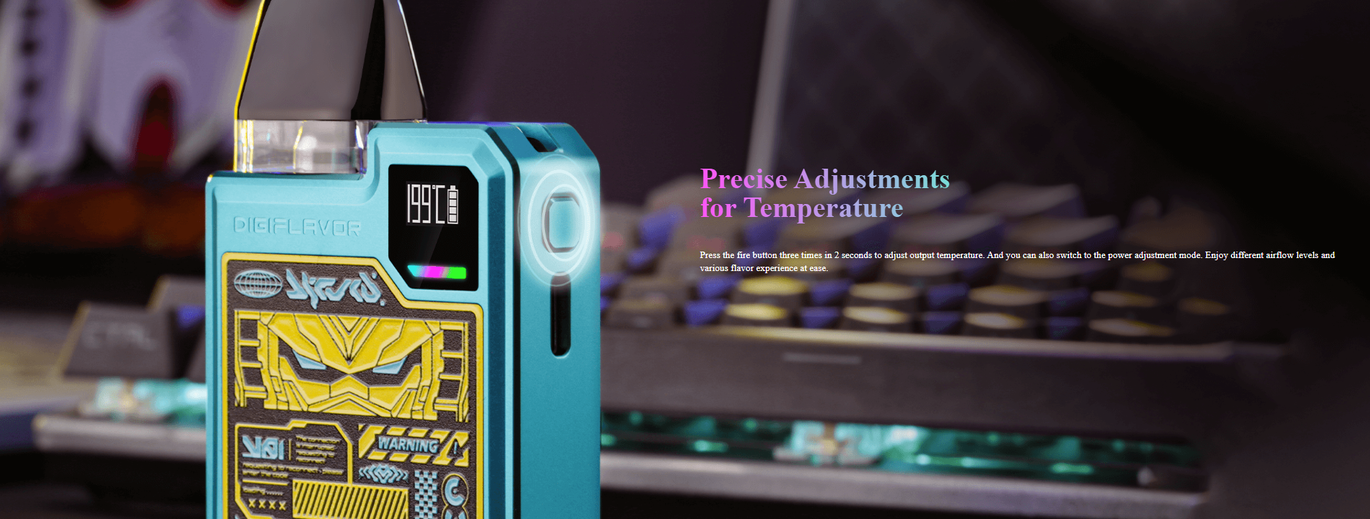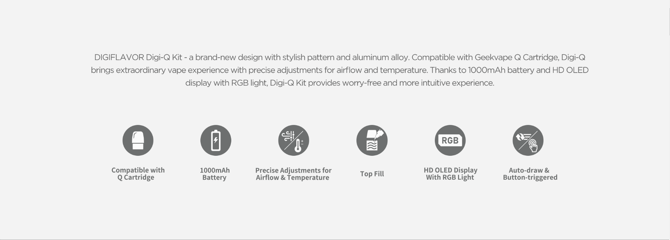 Geekvape Digi-Q вирізняється своєю інноваційністю та зручністю. Завдяки точному налаштуванню параметрів, користувачі можуть регулювати інтенсивність затяжки та смакові характеристики. Це компактний под-девайс із міцним алюмінієвим корпусом, який поєднує в собі високу продуктивність і стильний дизайн. OLED-дисплей надає всю необхідну інформацію про поточні налаштування.