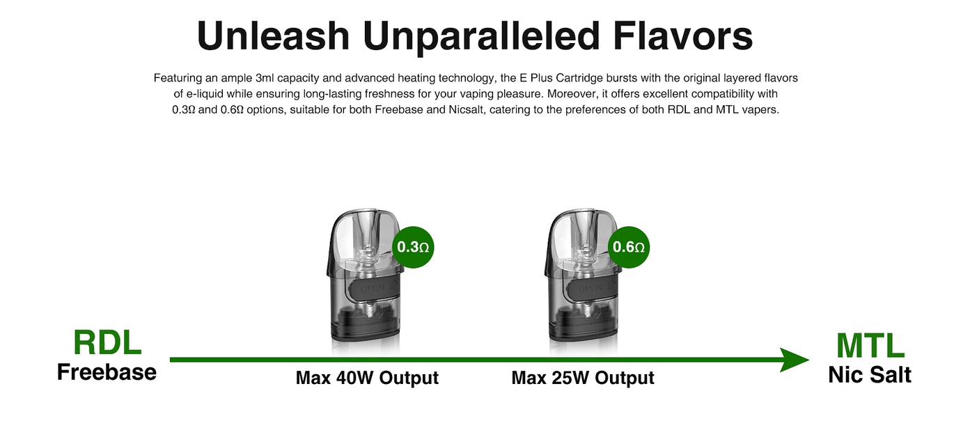 - 1 x Картридж E Plus 0,6 Ом (3 мл)