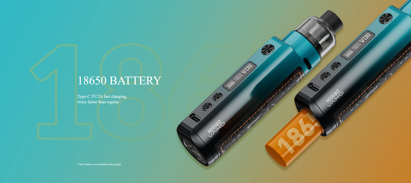 Oxva Origin 2 працює від змінного акумулятора формату 18650 (не входить у комплект), що забезпечує тривалий час роботи. Підтримується швидке заряджання через порт USB Type-C з силою струму 2А, що дозволяє швидко відновити заряд пристрою.