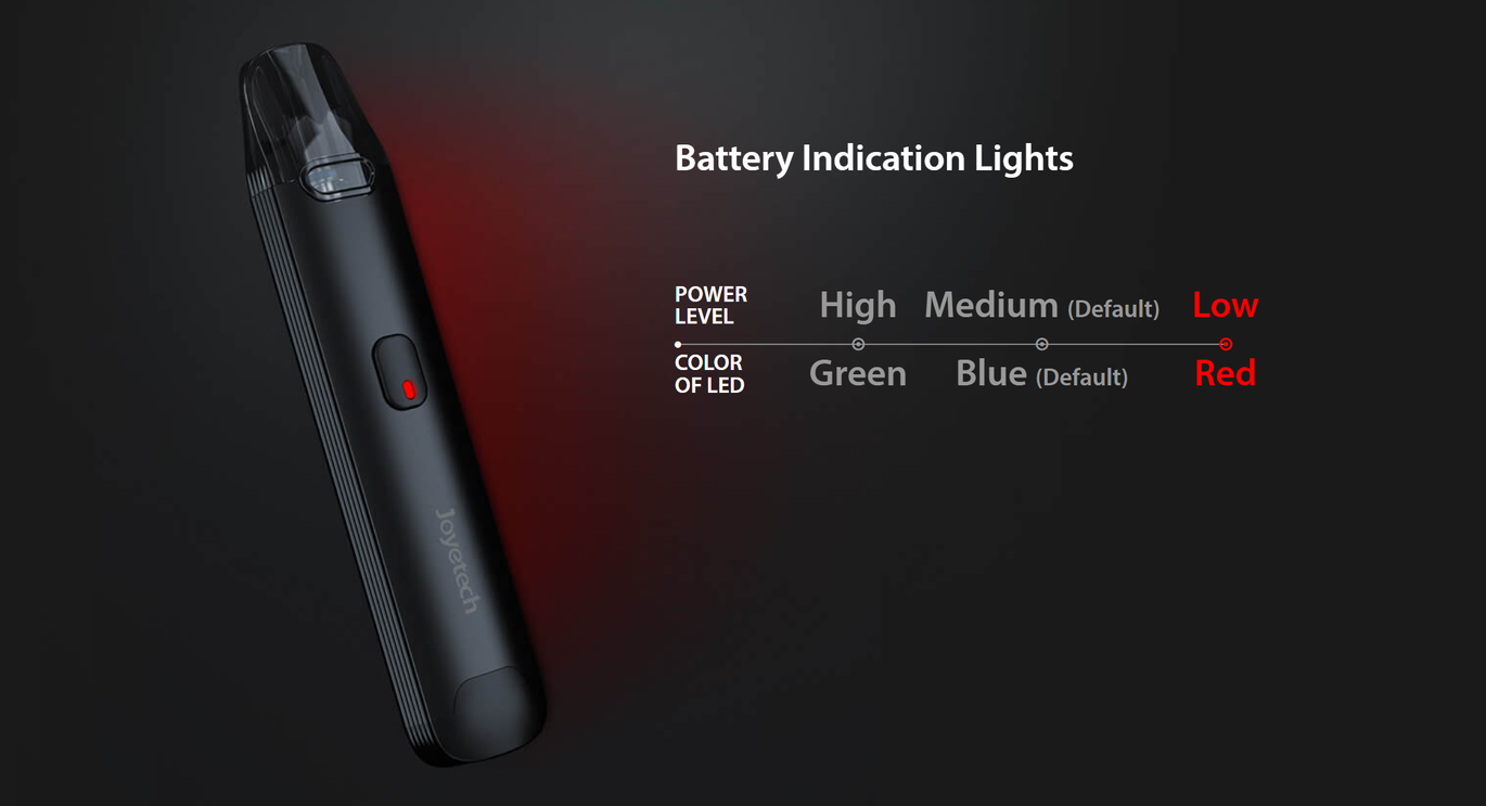 Вбудований LED-індикатор відображає стан акумулятора Joyetech Evio C за допомогою кольорової індикації: