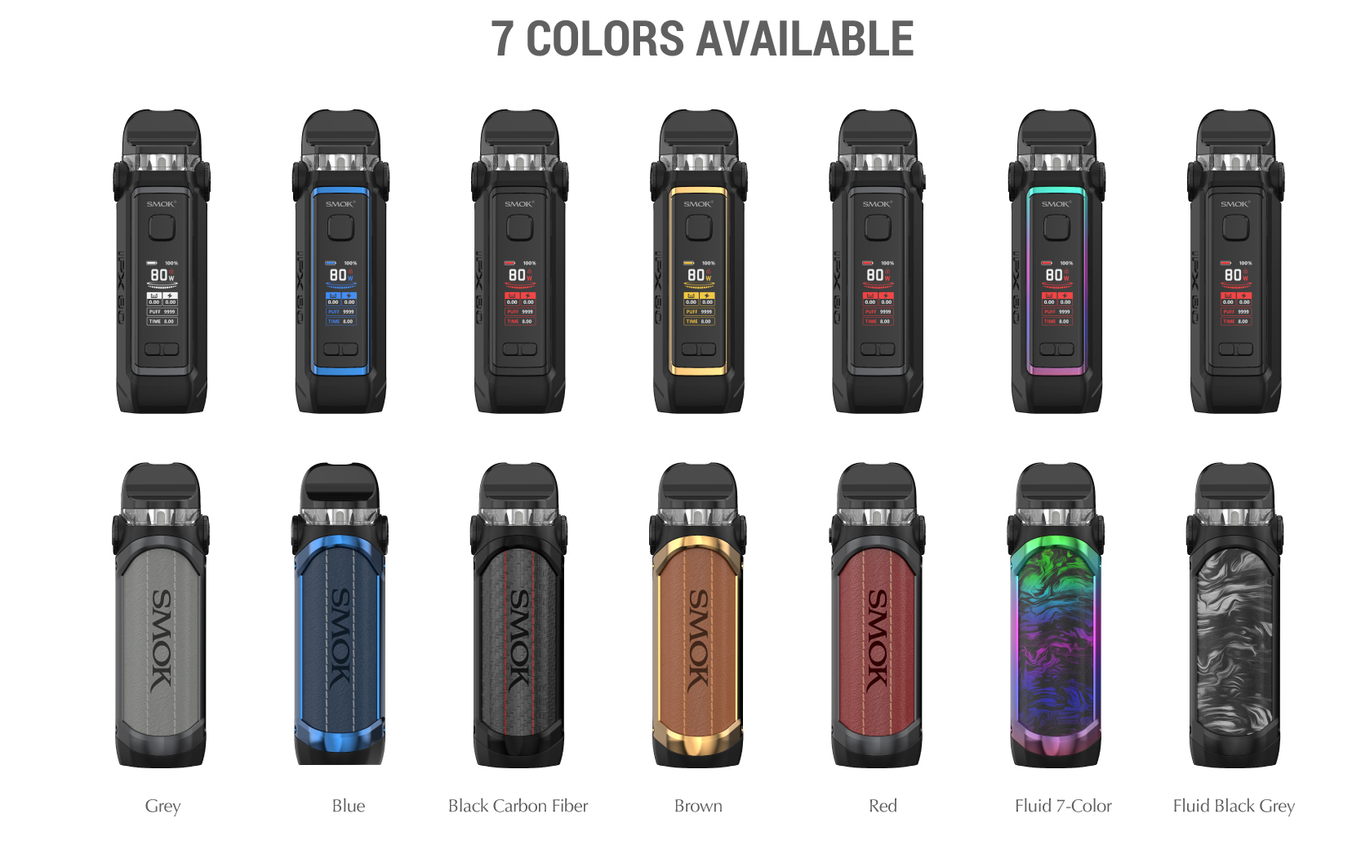 Smok IPX 80 Kit доступний у кількох стильних кольорах, що дозволяють обрати варіант відповідно до ваших уподобань: