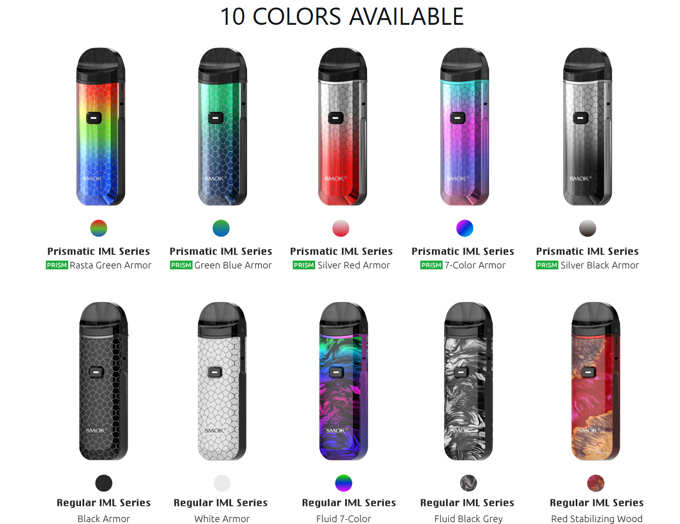 Кожен з цих варіантів надає Smok Nord Pro унікальний вигляд, підкреслюючи його сучасний стиль.