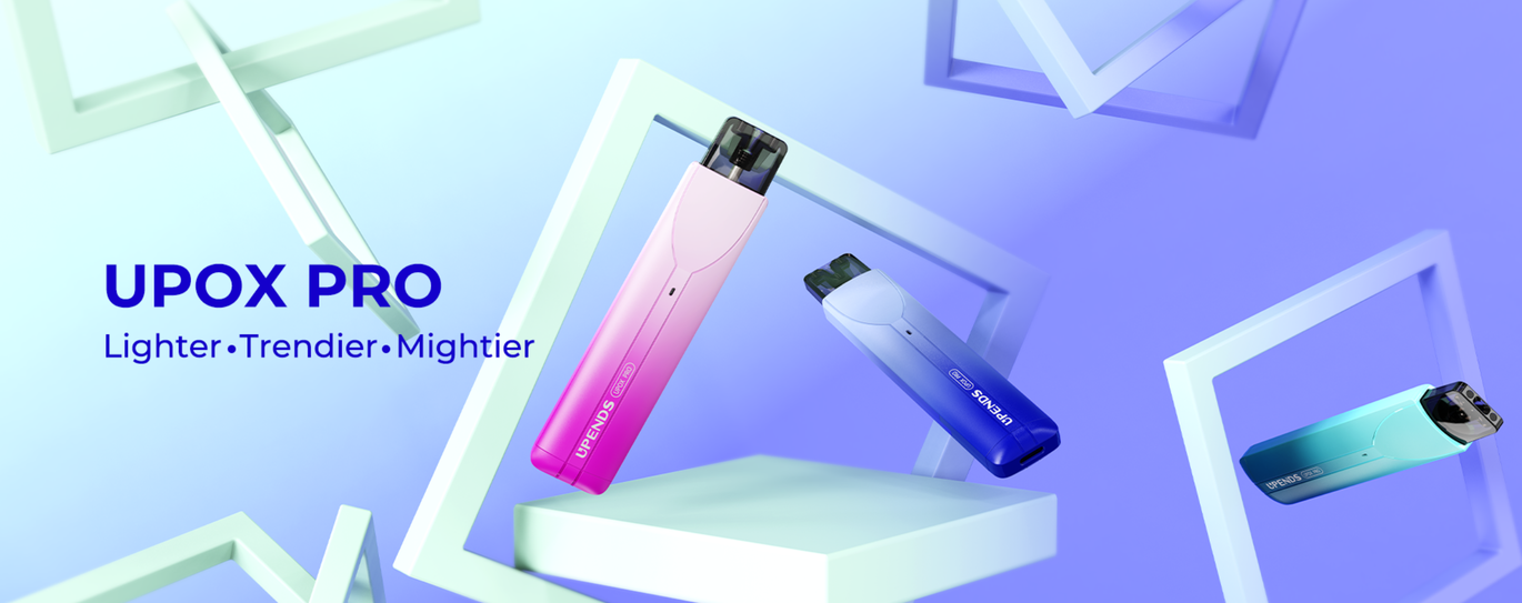 Гаджет має мінімалістичний та сучасний дизайн із тонким корпусом, що забезпечує зручність використання. Електронна сигарета Upends Upox Pro виготовлена із пластику, що робить його легким та приємним на дотик. Розміри становлять 115,7 х 24 х 14,6 мм, що робить його компактним та портативним.