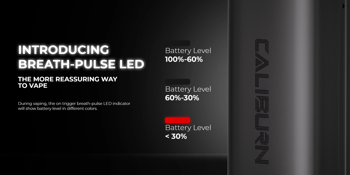 Uwell Caliburn AZ3 оснащений світлодіодним індикатором, який пульсує під час використання, відображаючи рівень заряду батареї: