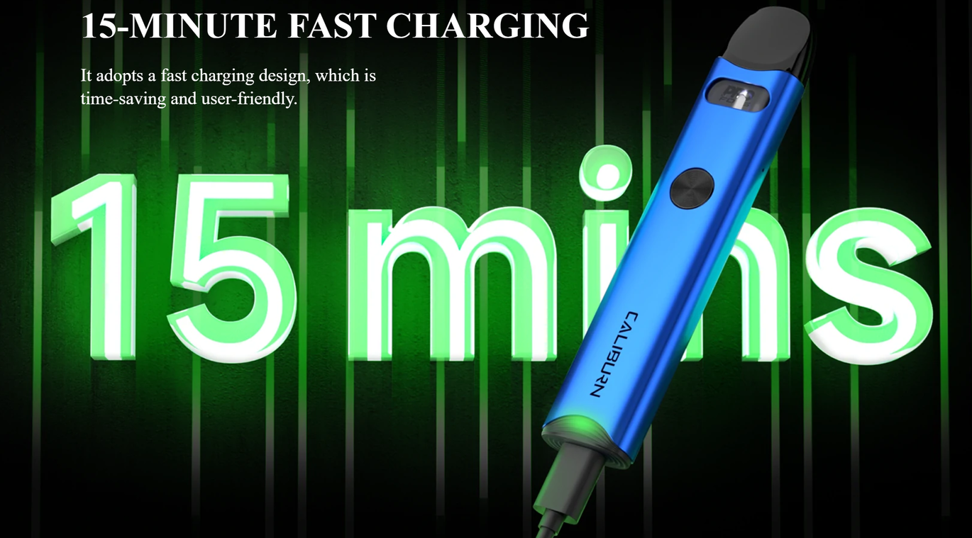Caliburn A3 оснащений вбудованим акумулятором ємністю 520 мАг, який забезпечує максимальну потужність до 13 Вт. Завдяки підтримці швидкої зарядки через порт USB Type-C, повна зарядка займає лише 15 хвилин, що є зручним для активних користувачів.