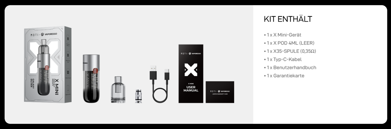 - 1 x Pod-система Vaporesso Moti X Mini Pod Kit 1150mAh