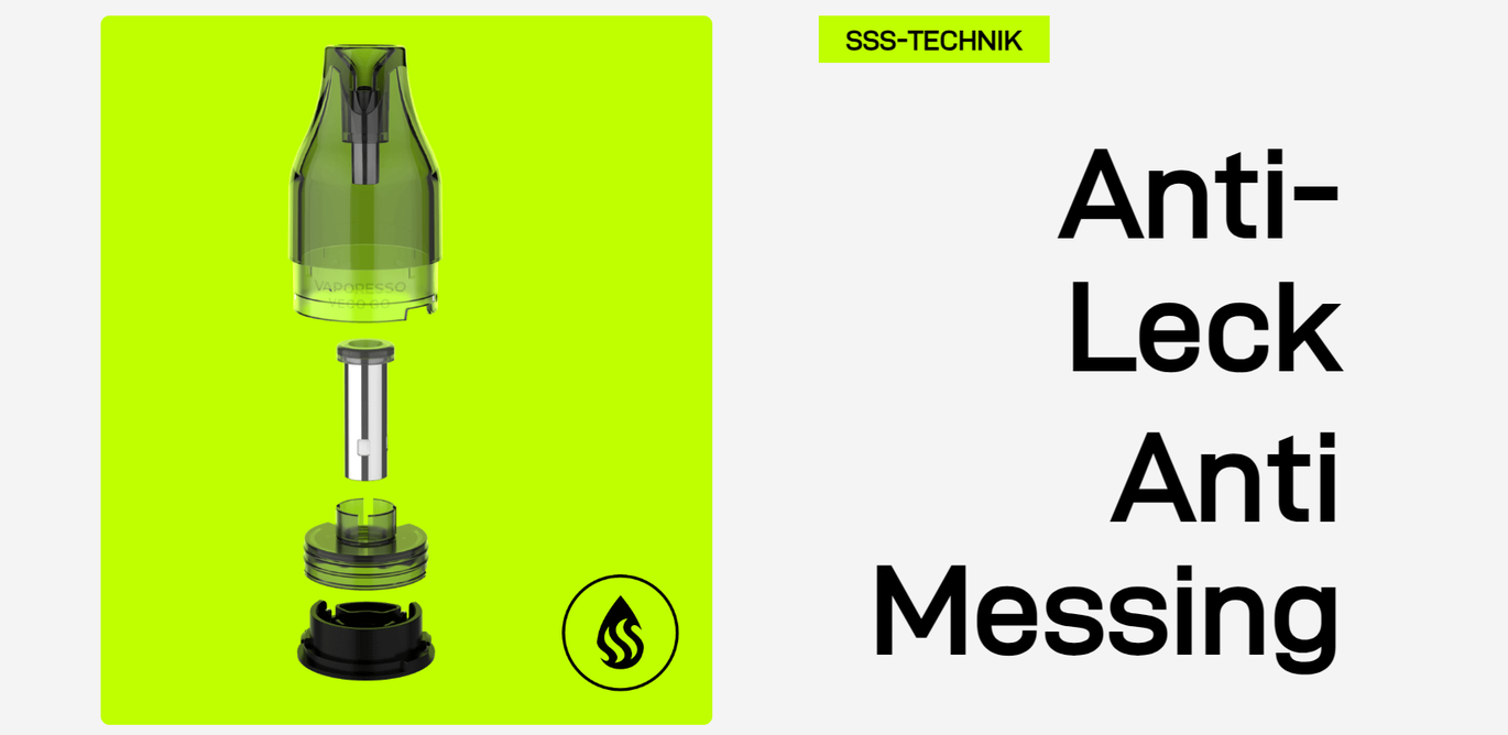 Vaporesso Veco Go використовує змінні картриджі об'ємом 5 мл з попередньо встановленими випарниками опором 0.6 Ом або 0.8 Ом. Резервуари для рідини оснащені технологією COREX, що забезпечує рівномірний нагрів і насичений смак. Заправка здійснюється знизу через силіконову заглушку, що запобігає протіканню та спрощує процес обслуговування.