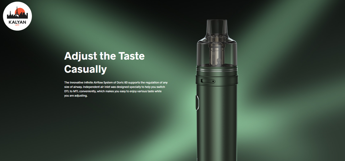 Система Infinite Airflow дозволяє налаштувати стиль ширяння від DTL до MTL, забезпечуючи максимальне задоволення від різних уподобань. Пристрій оснащений чіпом GENE, що гарантує стабільну потужність від 5 до 60 Вт та насичений смак.