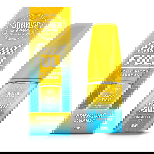 Набір сольової рідини Dinner Lady Fruit FULL Pineapple Ice (Ананас Лід) 30 мл 50 мг — це яскравий тропічний смак соковитого ананаса з насиченим охолоджуючим ефектом. Ідеально підходить для тих, хто шукає солодко-свіжу жижу з фруктовим характером і ментоловим післясмаком.