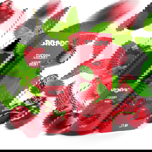 Набір сольової рідини DROPS Cherry Mint (Вишня М'ята) 30 мл 25 мг — це соковите поєднання стиглої вишні з легкою кислинкою та освіжаючої м’яти. Ягідно-м’ятна композиція створює збалансований смак, який одночасно солодкий і прохолодний. Міцність 25 мг забезпечує м’яку тягу та комфортне щоденне паріння.