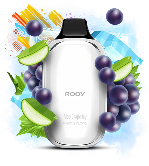 FLONQ ROQY 40000 Aloe Grape Icy (Алое Виноград Лід) — це витончений мікс соковитого темного винограду та ніжних, освіжаючих ноток алое. Цей одноразовий вейп пропонує незвичайне поєднання, де терпка солодкість ягоди пом'якшується трав'янистою свіжістю алое, а крижаний фініш надає композиції завершеності та бадьорості.