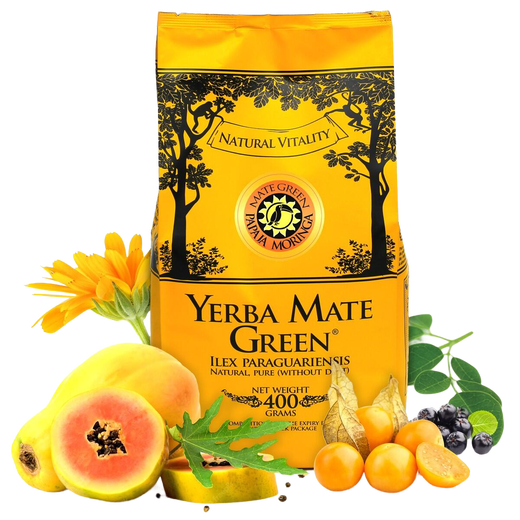 Ця унікальна бразильська суміш у зручному крафт-пакеті із замком zip-lock створена для тих, хто цінує легкість та здоров'я. Поєднання добірного падуба парагвайського з екзотичними додатками робить продукт незамінним помічником під час дієти, адже він містить: фермент "папаїн", що сприяє розщепленню білків, та легендарну морингу. За своєю корисністю листя моринги - це справжній суперфуд, у якому вітаміну А: у 4 рази більше, ніж у моркві, а заліза: у 25 разів більше, ніж у шпинаті.