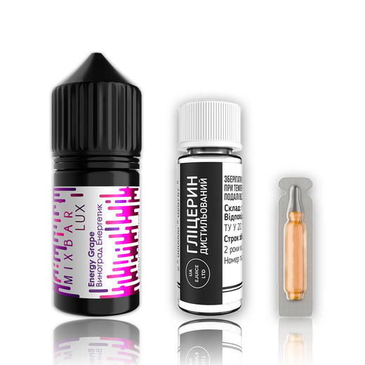 Набір сольової рідини Mix Bar Lux Energy Grape (Виноград Енергетик) 30 мл 50 мг – це унікальне поєднання насиченого виноградного смаку та освіжаючих нот енергетичного напою. Гармонійний баланс фруктової солодкості та легкого тонізуючого ефекту робить кожну затяжку вибухом смаку та свіжості.