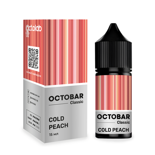 Набір сольової рідини Octobar Classic Cold Peach (Персик Лід) 30 мл 50 мг — це соковита фруктова рідина з приємним охолоджувальним ефектом. Насичений смак стиглого персика поєднується з крижаним післясмаком, створюючи гармонійний мікс, що освіжає з кожною затяжкою. Ідеальний варіант для тих, хто любить легку фруктову солодкість із холодком без надмірної насиченості.
