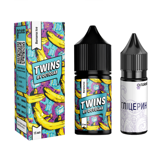 Octobar Twins Banana Ice 30 мл 65 мг — це поєднання солодкого фрукта і приємної прохолоди, яке підходить для щоденного паріння в літню пору.