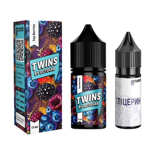 Набір сольової рідини Octobar Twins Top Berries (Ягоди) 30 мл 65 мг — це яскравий мікс лісових ягід із насиченим ароматом і солодко-кислим післясмаком. Поєднання малини, чорниці, ожини та інших ягід створює гармонійний смаковий букет, який з кожною затяжкою дарує вибух свіжості та фруктової насолоди. Міцність 65 мг сольового нікотину забезпечує швидке й потужне насичення, що особливо оцінять досвідчені користувачі pod-систем.