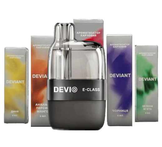 - Легальність: DEVI повністю відповідає всім законодавчим нормам, без обмежень за об'ємом, смаками та вмістом нікотину.