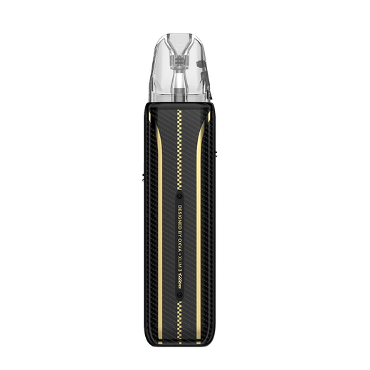 Pod-система Oxva Xlim 3 Ultra Pod Kit Ultra Carbon (Чорно-золотий) — це флагманський под, що поєднує строгий чорний карбон із розкішними золотими елементами. Цей девайс володіє потужним акумулятором 1500 мА·год та передовим 2,2-дюймовим сенсорним HD-екраном. Електронка підтримує потужність до 30 Вт.