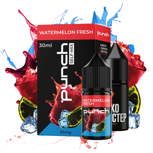 Набір сольової рідини Punch Watermelon Fresh (Кавун Лимон) 30 мл 65 мг — це яскравий мікс соковитого кавуна та освіжаючого лимону з характерним літнім характером. Смак починається з солодкої кавунової хвилі, яку швидко підхоплює лимонна свіжість, створюючи ефект холодного фруктового лимонаду. Ідеальний варіант для спекотного дня та щоденного паріння.