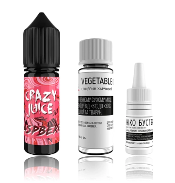 Набір Crazy Juice HYBRID 15 мл - ексклюзивний набір для приготування власних вейп-сумішей, що пропонує широкий спектр смаків та можливостей для вашої творчості. Цей комплект надає унікальні можливості для експериментів із сольовим нікотином та з бустом органіки, дозволяючи вам створювати свій ідеальний смак. Кожен флакон містить 15 мл преміум рідини з високим вмістом нікотину - 50 або 65 мг/мл жижі, що ідеально підходить для тих, хто любить чутливий удар по горлу, що гарантує насичений та повноцінний досвід вейпінгу.