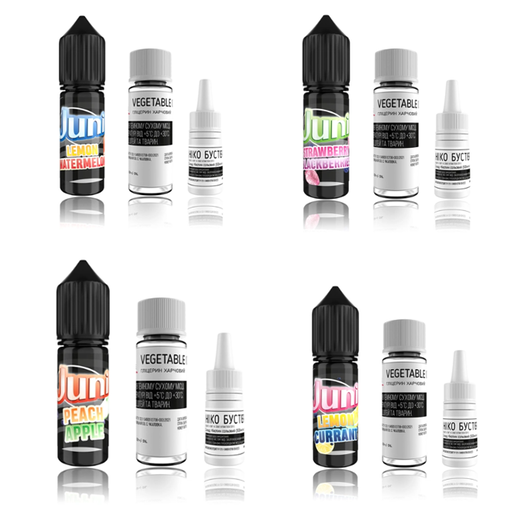Ці уподобання збагатять ваш вейпінговий досвід унікальним ароматом. Досліджуйте ці чудові комбінації та насолоджуйтесь освіжаючою ментоловою дією сольових рідин Juni.
