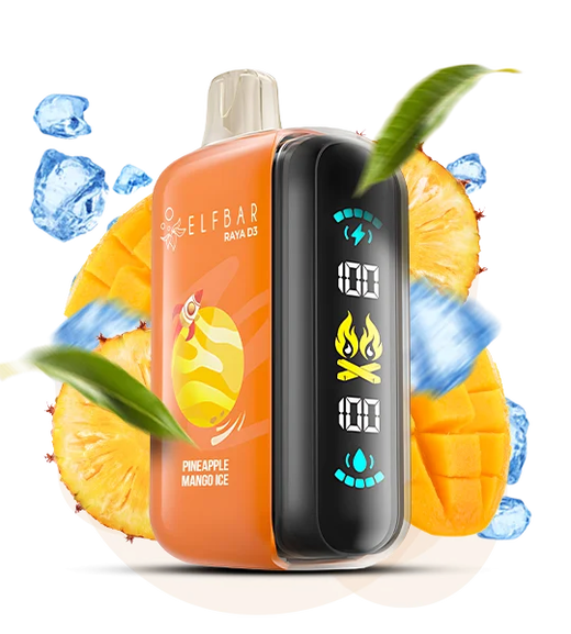 ELF BAR RAYA D3 25 000 Pineapple Mango Ice (Ананас Манго Лед) — это тропический фруктовый микс, в котором сочный ананас сочетается со сладким манго и освежающей ментоловой прохладой. Яркий и сбалансированный вкус дарит ощущение летнего фруктового коктейля с легкой ледяной ноткой, идеально подходит любителям экзотических ароматов с освежающим послевкусием.