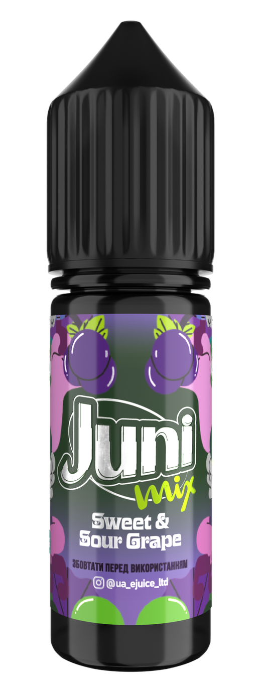 Аромабустер Juni Mix Sweet Sour Grape (Сладкий Виноград) 7 мл — это насыщенный виноградный вкус с приятной сладостью и лёгкой кислинкой. Идеальный выбор для любителей ярких и сбалансированных фруктовых ароматов.
