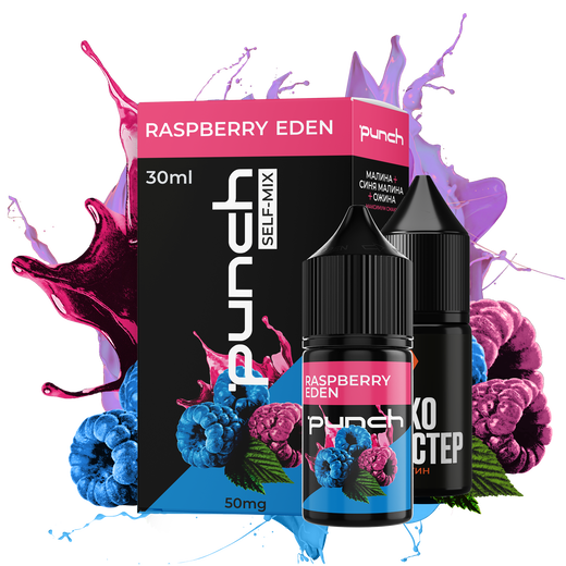 Набор солевой жидкости Punch Raspberry Eden (Розовая и голубая малина Ежевика) 30 мл 50 мг — это многогранный ягодный микс с яркими нотами розовой и голубой малины, дополненными сочной ежевикой. Начинается с нежной сладости, постепенно раскрываясь насыщенной фруктовостью и лёгкой терпкостью.