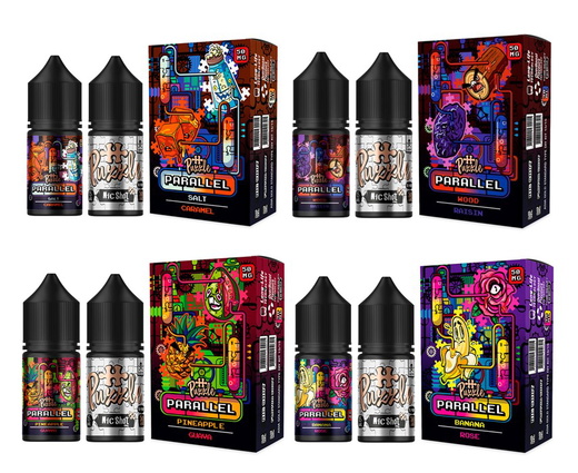 Линейка жижки Parallel предлагает интересные и нестандартные сочетания: от сладких десертов до свежих фруктов с лёгкими цветочными или пряными акцентами.