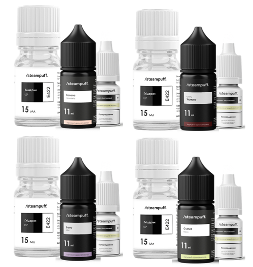 Steampuff 30 мл — это оригинальный комплект для самостоятельного создания жидкости на солевом никотине от украинского производителя. Идеально подходит для использования в маломощных устройствах, включая многоразовые pod-системы.