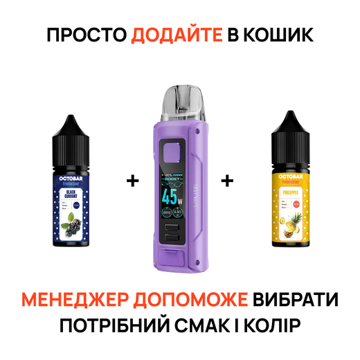 Наш менеджер свяжется с тобой после покупки (в мессенджере или по телефону — как тебе удобно) и поможет выбрать цвет пода и вкусы жидкостей из доступного ассортимента.