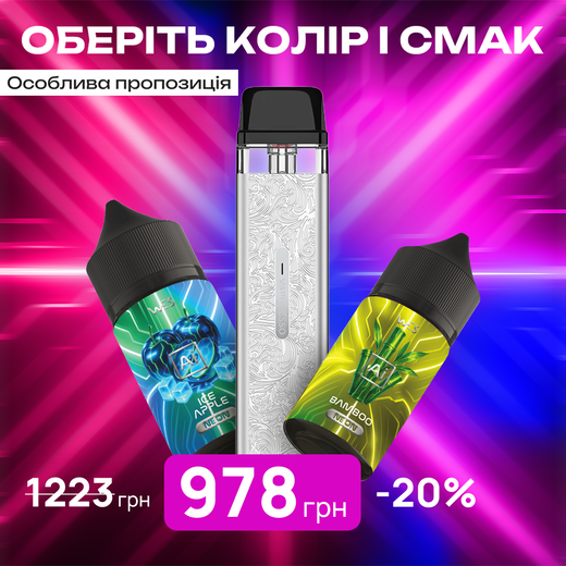 Это пропуск в неоновое будущее вейпинга! Твой идеальный старт: легендарный Vaporesso Xros Mini и два флакона футуристичной жидкости WES AI Neon 30 мл.