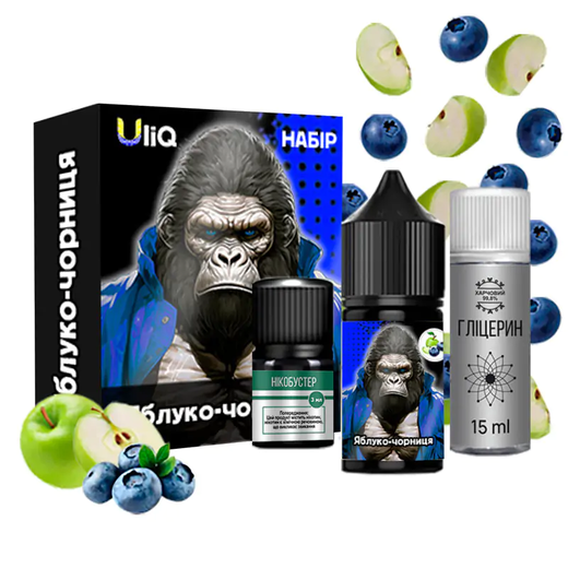 Набор солевой жидкости Uliq 30 мл 50 мг Salt Яблоко-черника — это идеальное сочетание сладкого яблока и кислой черники, которое подарит вам настоящее фруктовое наслаждение. Свежее яблоко придает натуральный вкус, а черника добавляет глубину и яркость, создавая гармоничную фруктовую композицию. Это отличный выбор для любителей ярких и насыщенных фруктовых жидкостей.