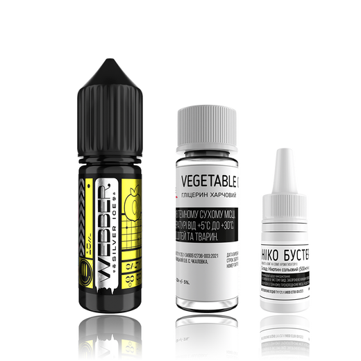 В набор входят: аромабустер для глубокого раскрытия фруктового букета, никобустер с крепостью 65 мг для мощного эффекта и глицерин, который делает пар мягким и плотным.