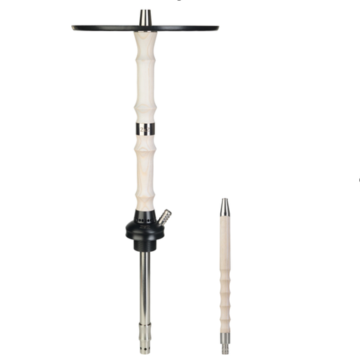Шахта виготовлена з нержавіючої сталі, доповненої декоративними деталями з ясеня, а основа виконана з полиацеталю — міцного та термостійкого пластику. Висота становить 60 см, що робить модель зручною як для домашнього використання, так і для закладів. Внутрішній діаметр — 14 мм, забезпечує щільну та комфортну тягу. З’єднання з колбою здійснюється через ущільнювач, що гарантує герметичність та простоту складання. Вбудований дифузор робить затяжку тихішою та більш плавною.