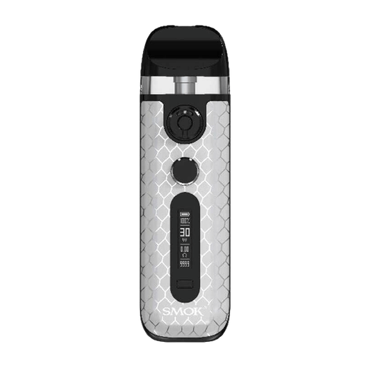 Smok Novo 5 White Cobra — стильна pod-система в білому корпусі з текстурою під шкіру кобри, створена для комфортного та насиченого паріння. Пристрій має (5–30 Вт) потужності, акумулятор на 900 мАг та підтримує активацію по затягуванню, так і запуск по кнопці. Завдяки OLED-екрану, ви бачите всі важливі показники: рівень заряду, опір, потужність і лічильник тяг. Картридж об’ємом 2 мл із сітчастим випарником 0,7 Ом забезпечує м’який пар і чисту передачу смаку. А регулювання тяги дозволяє адаптувати пристрій до будь-якого стилю затягування.