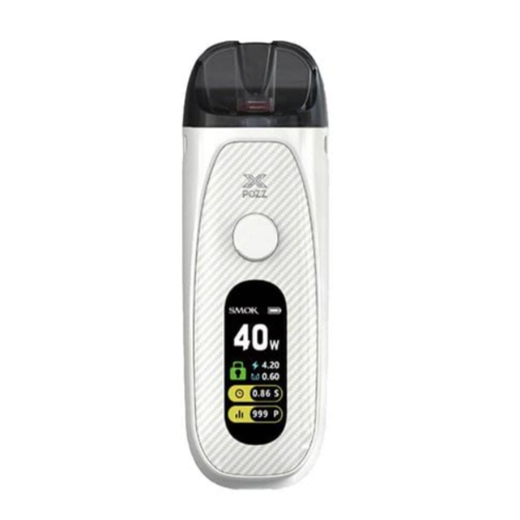 Pod-система Smok POZZ X White — це елегантна та потужна pod-система, виконана в чистому білому кольорі, що символізує чистоту та стиль. Створена на честь десятиріччя компанії Smok, вона втілює передові технології та зручність використання. Ергономічний дизайн з округлими краями забезпечує комфортне утримання в руці. Кольоровий 0.96-дюймовий TFT-екран чітко відображає всю важливу інформацію: рівень заряду акумулятора на 1400 мАг, встановлену потужність (5-40 Вт), опір випаровувача та кількість затяжок.