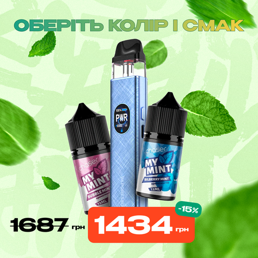 Стартовий набір: под "Vaporesso Xros 5" + 2 рідини "Chaser My Mint 30 мл"
