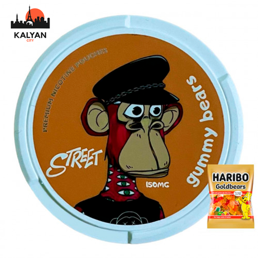 Street Gummy Bears 150 mg (Мармеладні Ведмедики) – це не просто солодкий спогад з дитинства, а справжній виклик для твоїх рецепторів! Кожен з 25 яскравих паучів приховує в собі не лише улюблений смак мармеладних ведмедиків, але й нищівну міць. Цей снюс – зухвалий нікотиновий продукт, де грайливість зустрічається з екстремальною міцністю. Одна порція – це цілий пакетик задоволення та колосальні 150 мг нікотину. Готовий до такого неочікуваного повороту?